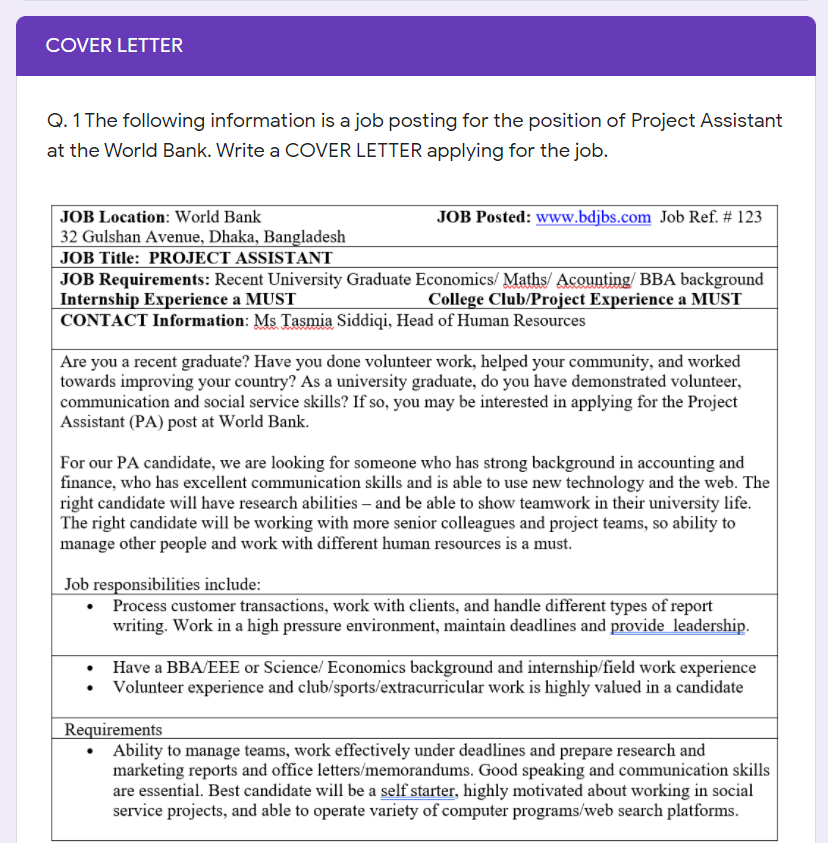 Solved Cover Letter Q 1 The Following Information Is A Job Chegg Com